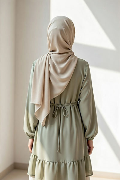 Coordinating lightweight chiffon hijab included (soft, non-slip, and easy to drape)
