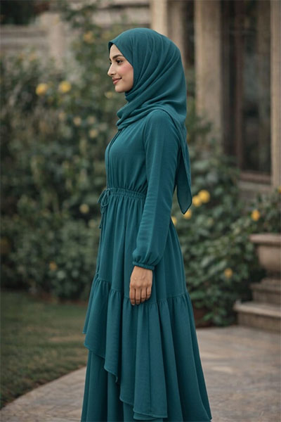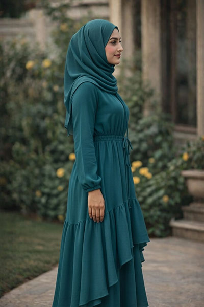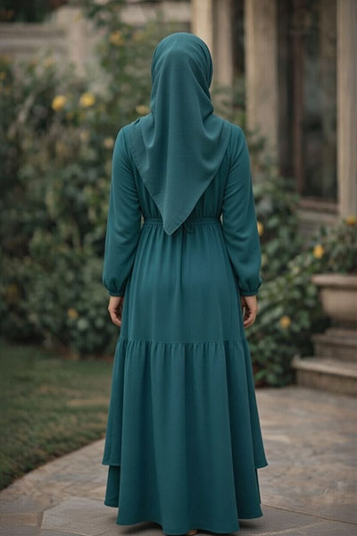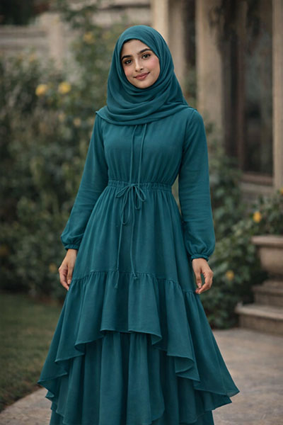 Discover effortless grace with our Teal Elegance Tiered Maxi Dress, designed for the modern Muslim woman who values both modesty and timeless style.